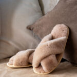 Как сделать свой домашний образ не только теплым, но и стильным? Облачиться в светлые оттенки с головы до ног! Тапочки из натурального овечьего меха в цвете капучино отлично справятся с этой задачей и создадут не только уютный, но и модный домашний образ.